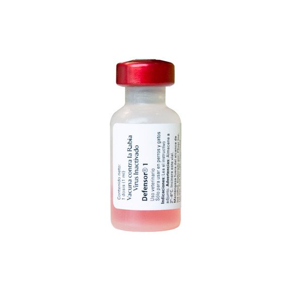 Defensor® 1 es una vacuna altamente inmunogénica preparada con un virus rábico desarrollado en cultivo celular e inactivado químicamente aprobada en perros y gatos.