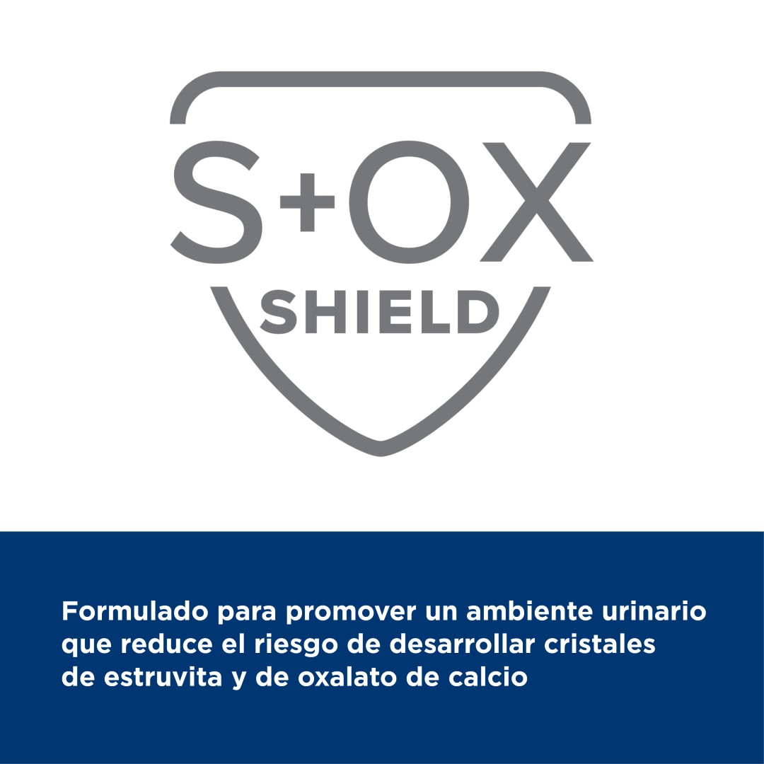 Nutrición para la salud urinaria para reducir la tasa de signos de CIF, disolver los urolitos de estruvita y disminuir el riesgo de recurrencia urolitos/tapones de estruvita y urolitos de CaOx. Para gatos a partir de los 1 año de edad.