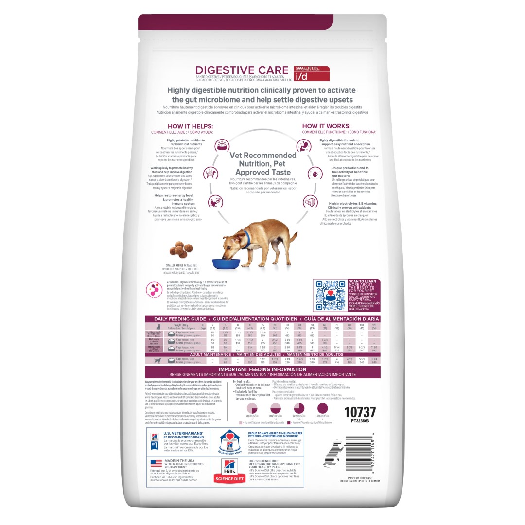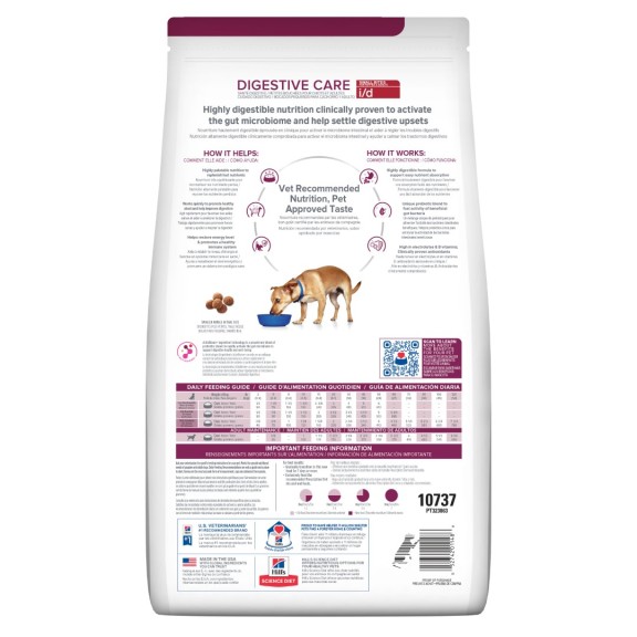 Información adicional: Hill's Prescription Diet i/d Small Bites Dry Dog Food proporciona toda la nutrición que su perro pequeño necesita. Está especialmente creado en tamaño de croquetas más pequeñas para satisfacer las necesidades de su perro más pequeño o perros que prefieren croquetas más pequeñas.