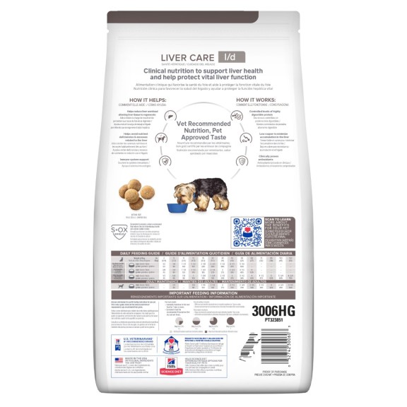 Hill's Prescription Diet l/d Dry Dog Food es un alimento completo y equilibrado para perros que necesitan cuidado del hígado.