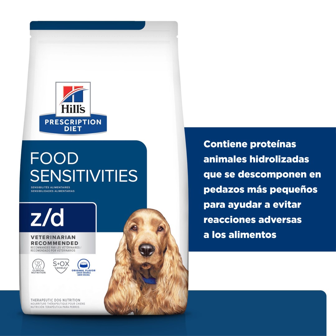 Los nutricionistas y veterinarios de Hill's desarrollaron la nutrición clínica Prescription Diet z/d Small Bites especialmente formulada para apoyar las sensibilidades alimentarias de los perros. De hecho, z/d Small Bites es una nutrición clínicamente probada para ayudar a evitar reacciones adversas a los alimentos.