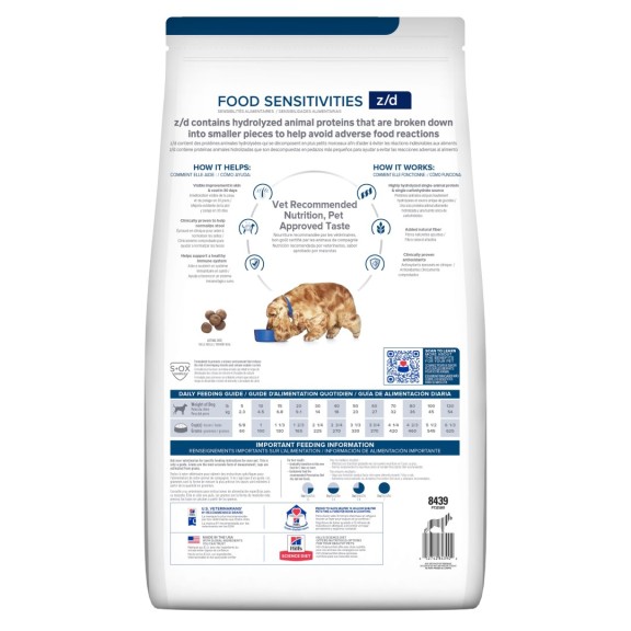 Hill's Prescription Diet z/d Dry Dog Food es un alimento completo y equilibrado que aporta toda la nutrición que tu perro necesita.