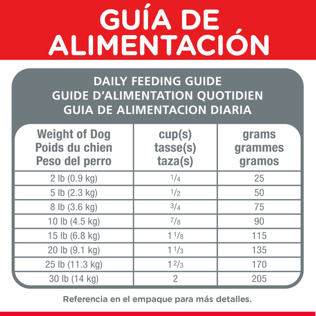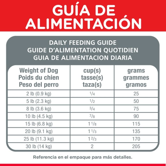 No se recomienda para: Cachorros o perras adultas gestantes o lactantes. Durante la gestación o lactancia las perras deben cambiar al alimento para perros Hill’s® Science Diet® Puppy Small & Mini®.