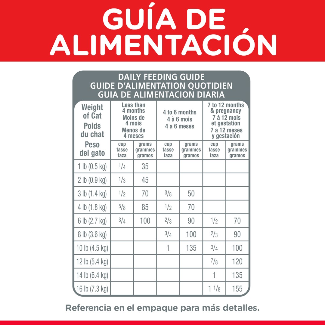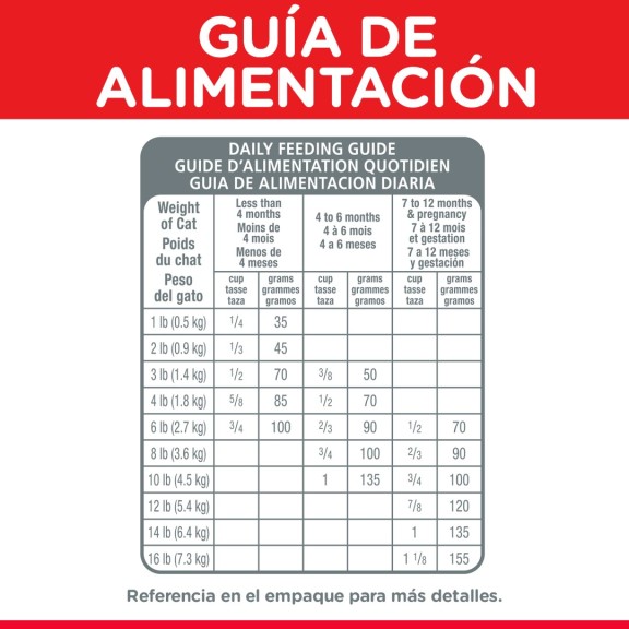 No se recomienda para: Alimentación a largo plazo de gatos adultos, a menos que tengan requerimientos de energía más altos de lo normal. Presentación: